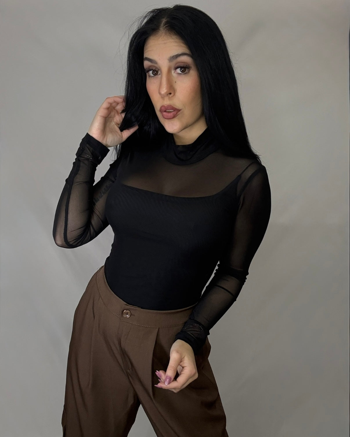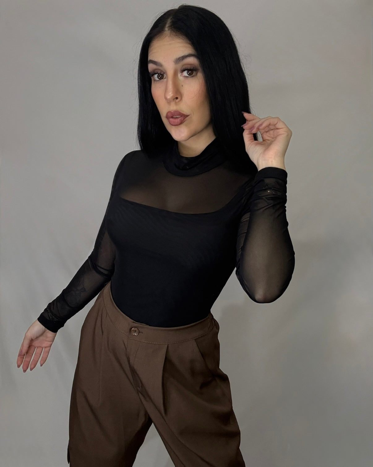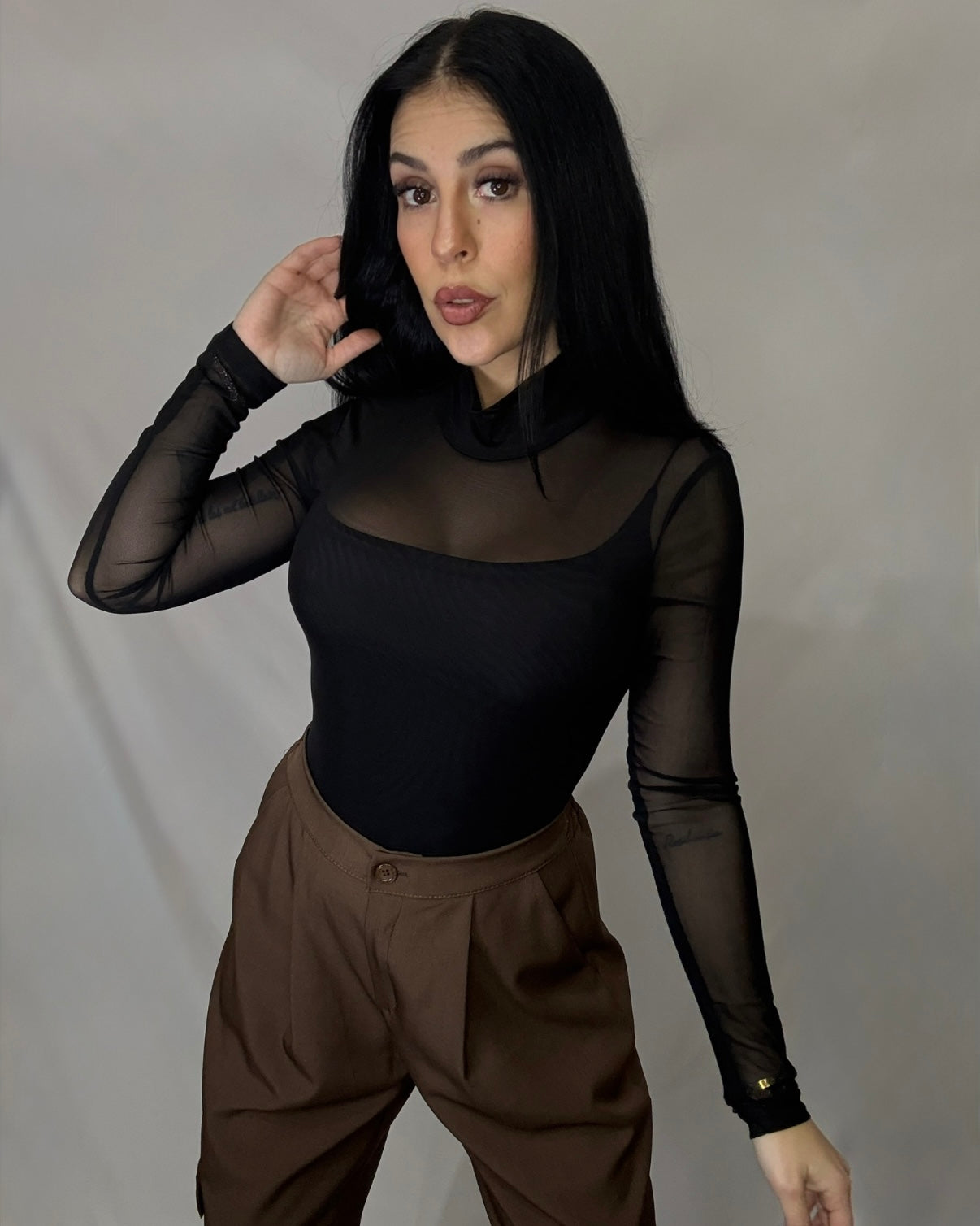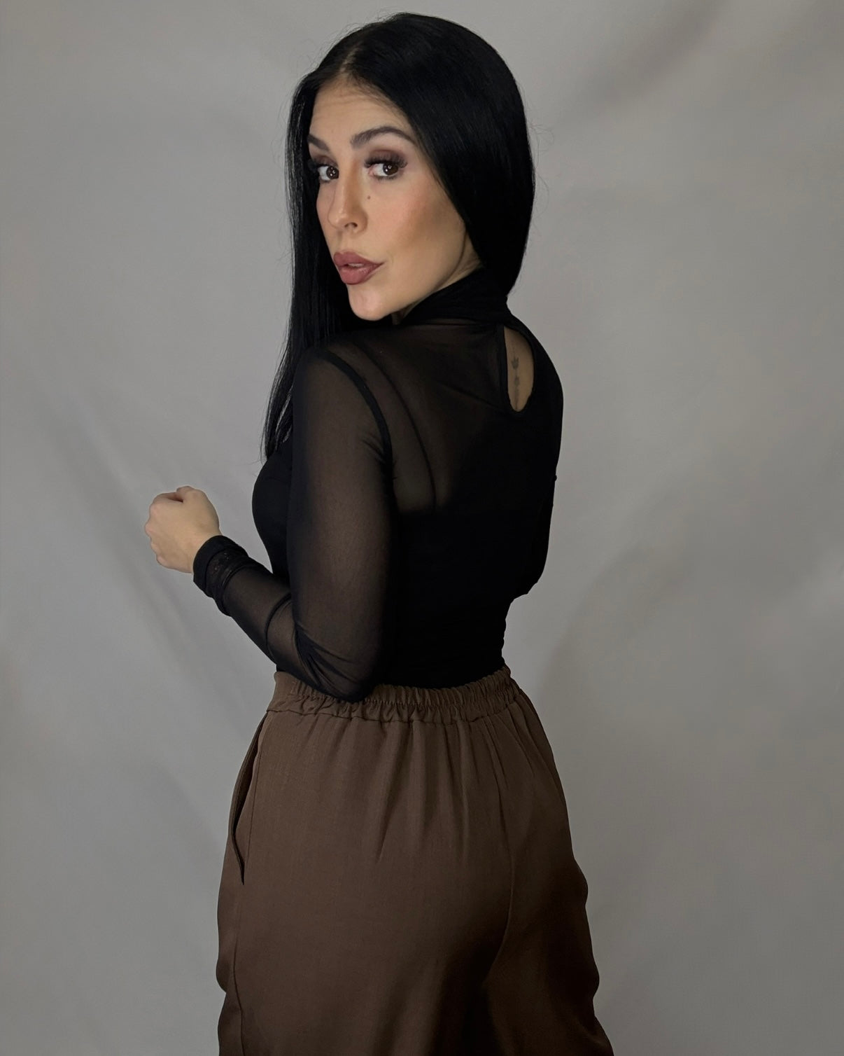 Body de tul con cuello alto.