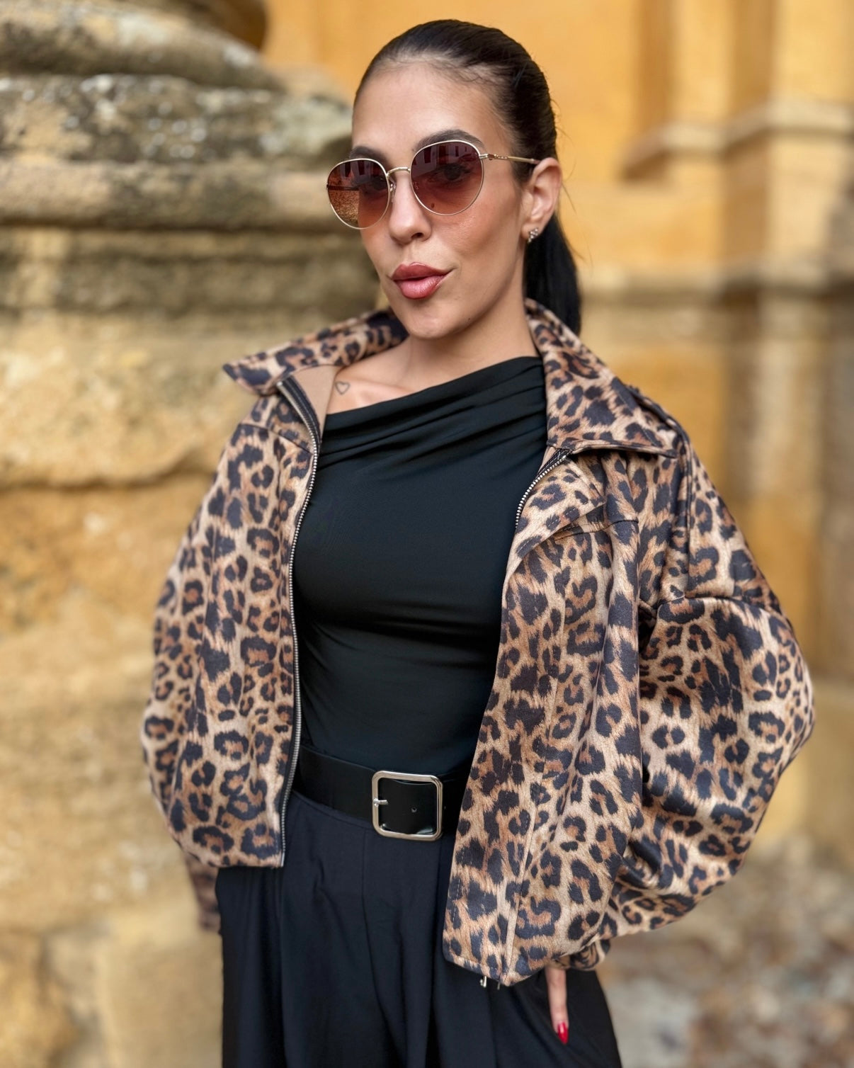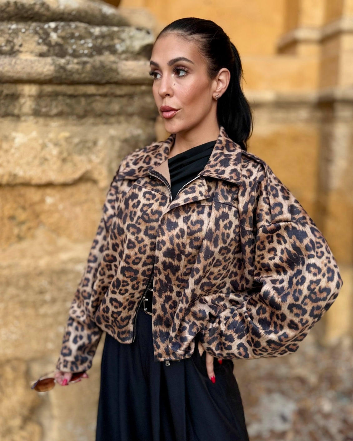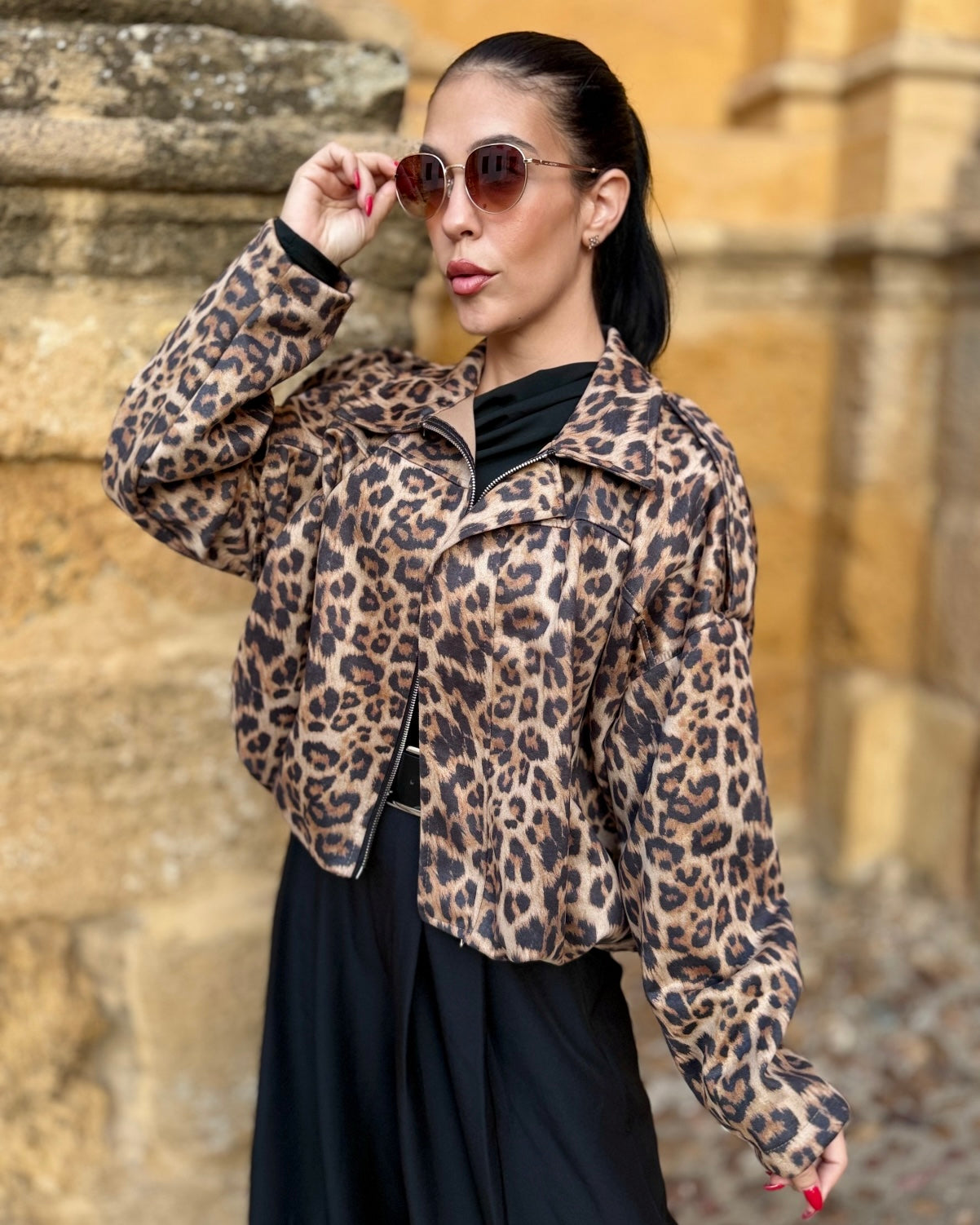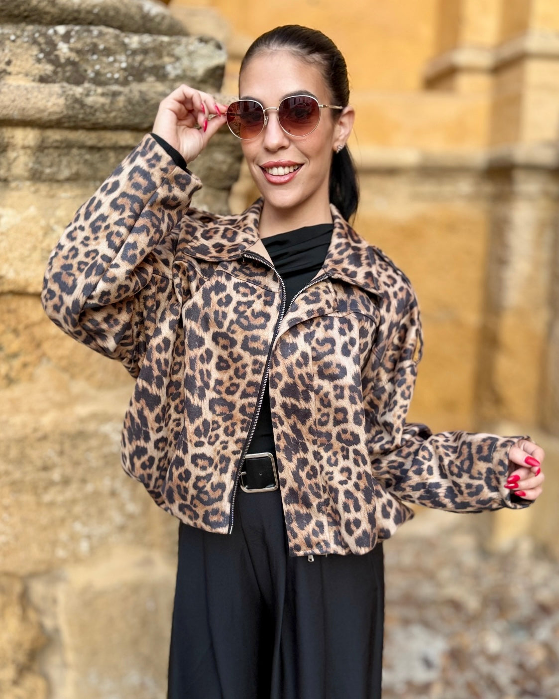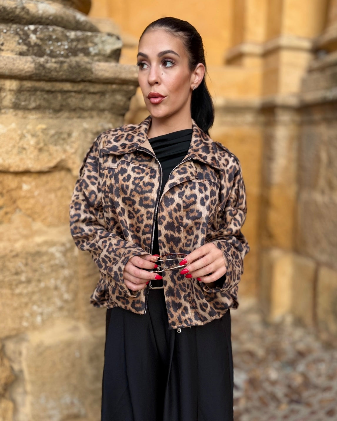 Bomber en tejido de antelina con engomado en la cintura.