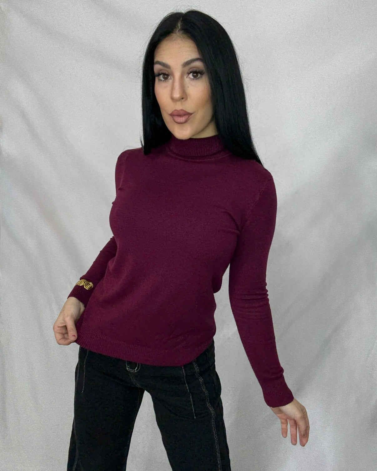 Jersey de punto elástico suave con cuello alto.