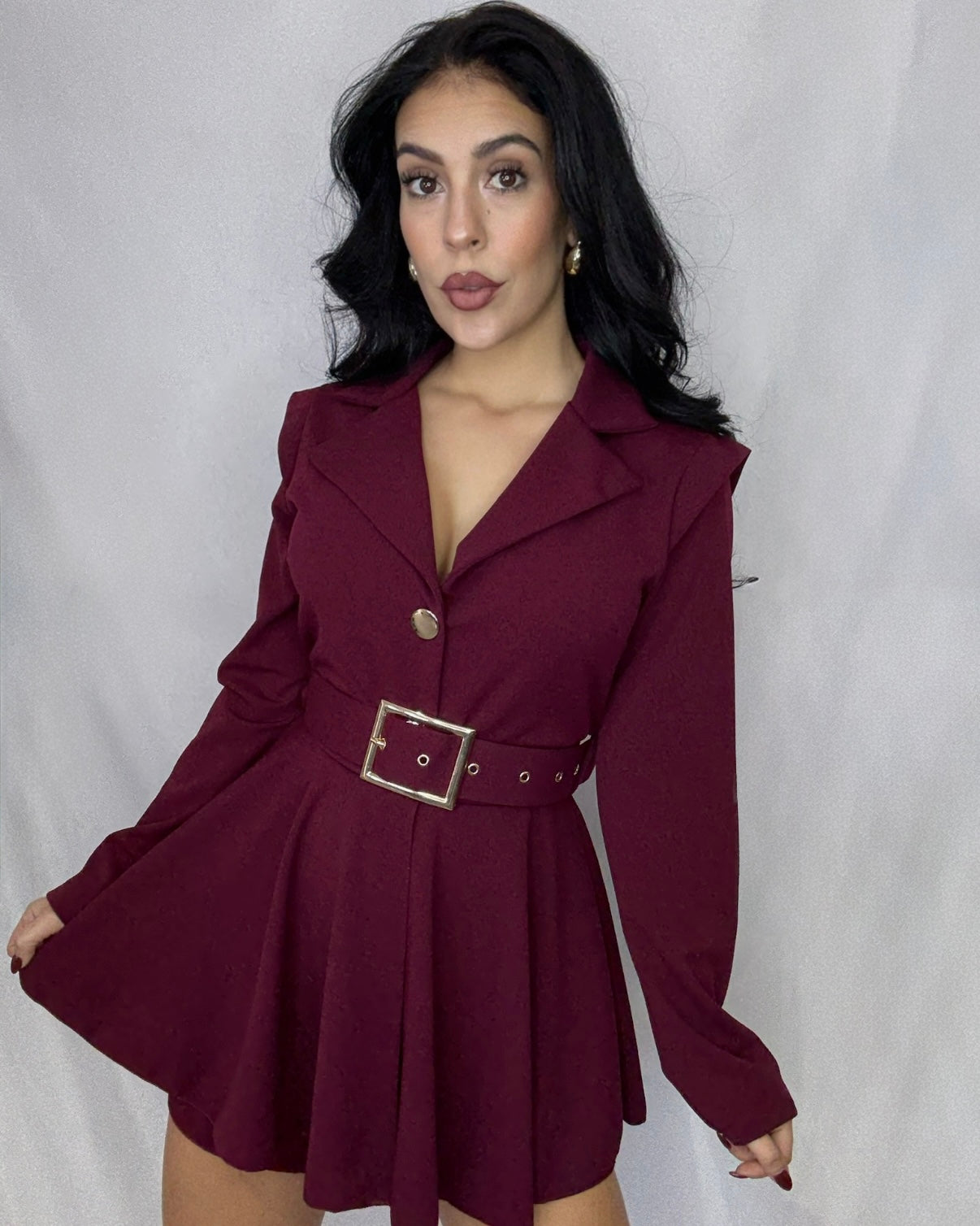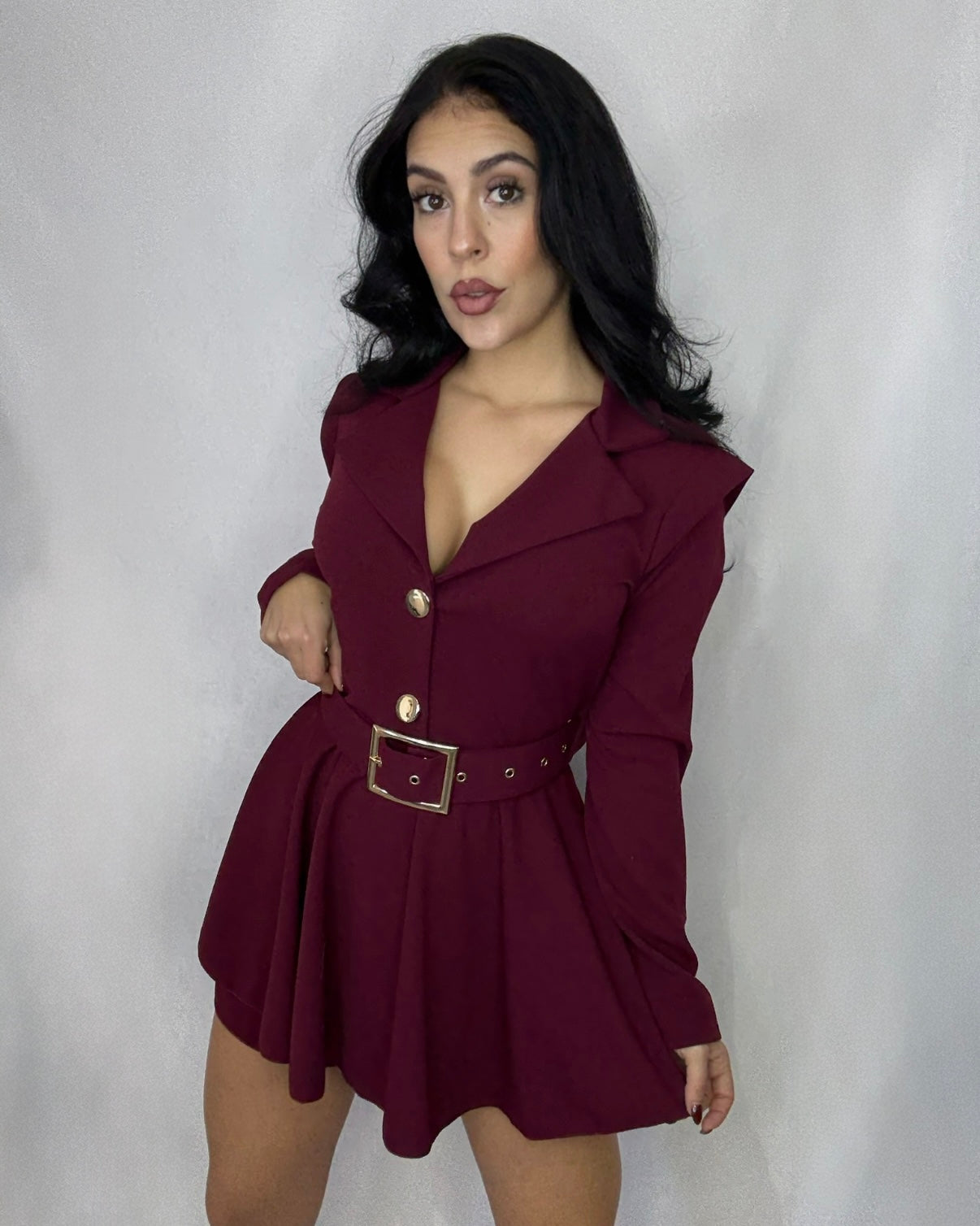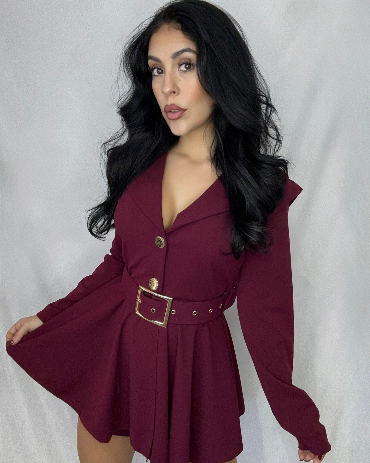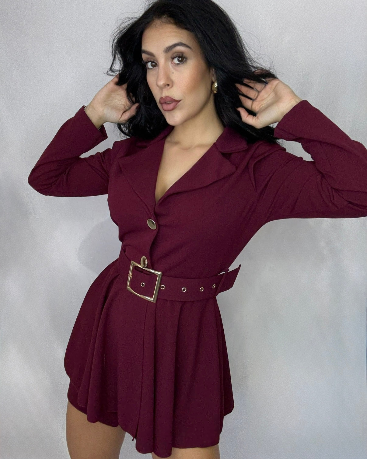 Mono en talla única con detalle de botón dorado y cinturón incorporado.