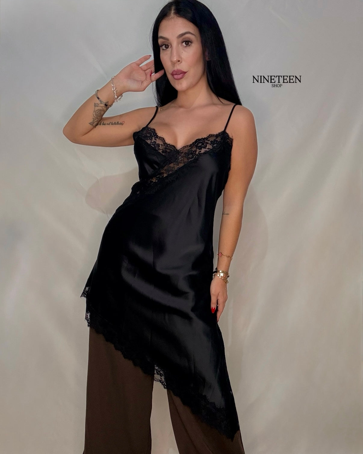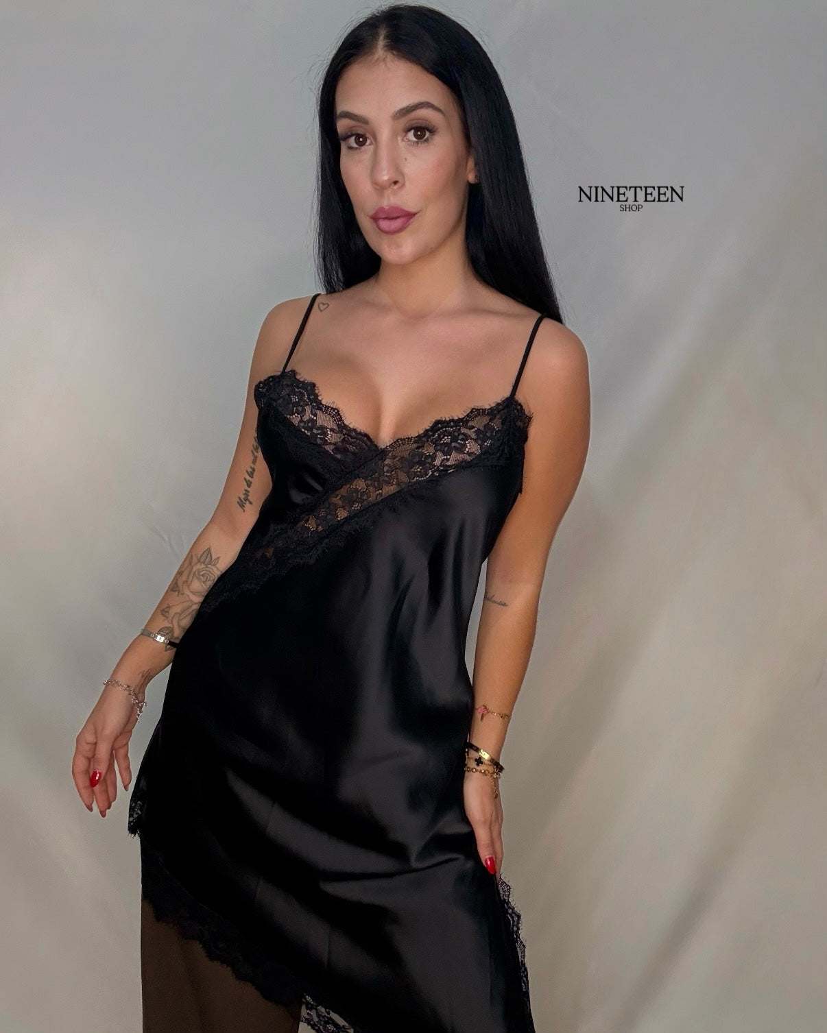 Vestido lencero de seda con encaje en el pecho y el bajo.